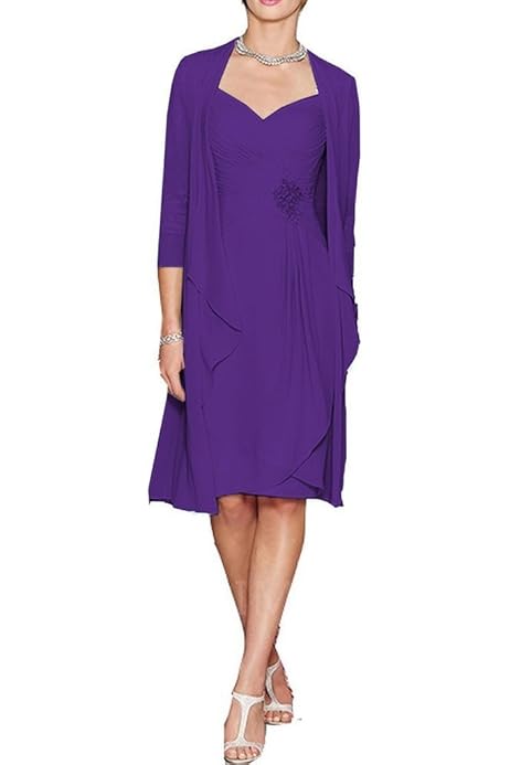 Amazon Com Luolandi Two Piece Sheath Column Mother Of The Bride Dress Elegant V Neck Knee Length Chiffon 3 4 Length Sleeve With Embroidery Clothing Shoes Jewelry